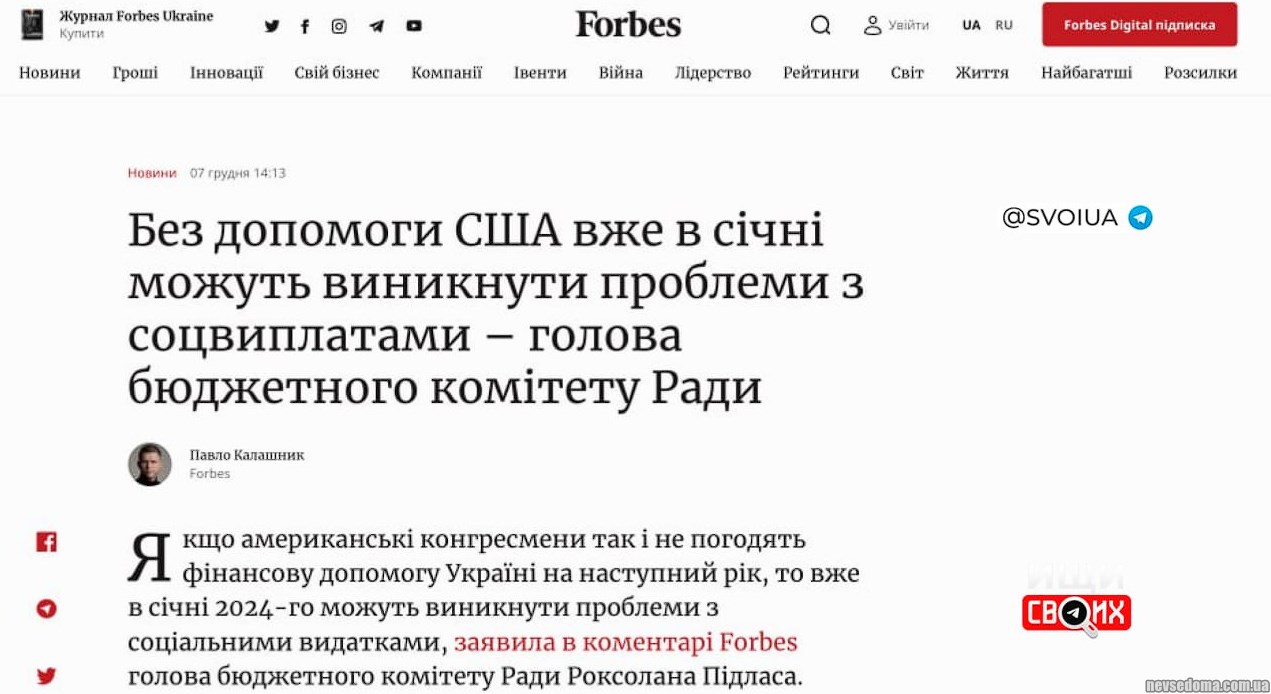 - Без допомоги США в Україні вже в січні можуть виникнути проблеми із соцвиплатами, – голова бюджетного комітету ВР Підласа.
