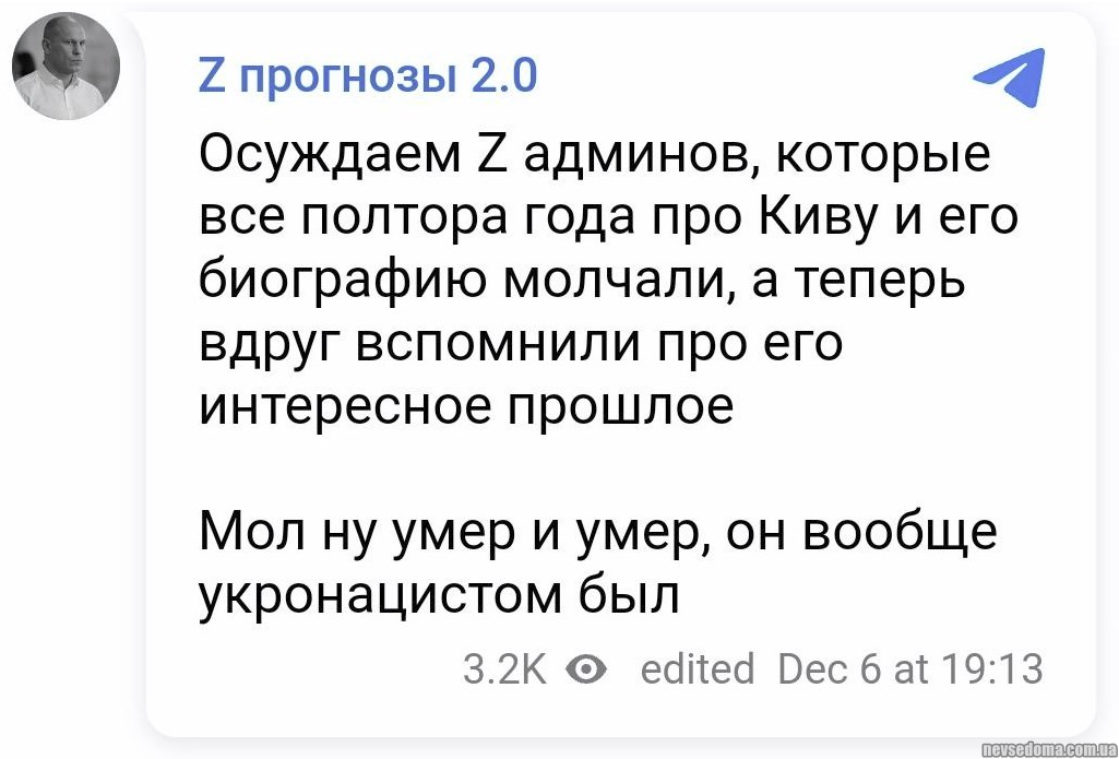 - Ківу вбили! Труп зрадника виявили у Підмосков'ї, – русявий телеканал РЕН ТВ із посиланням на джерела.