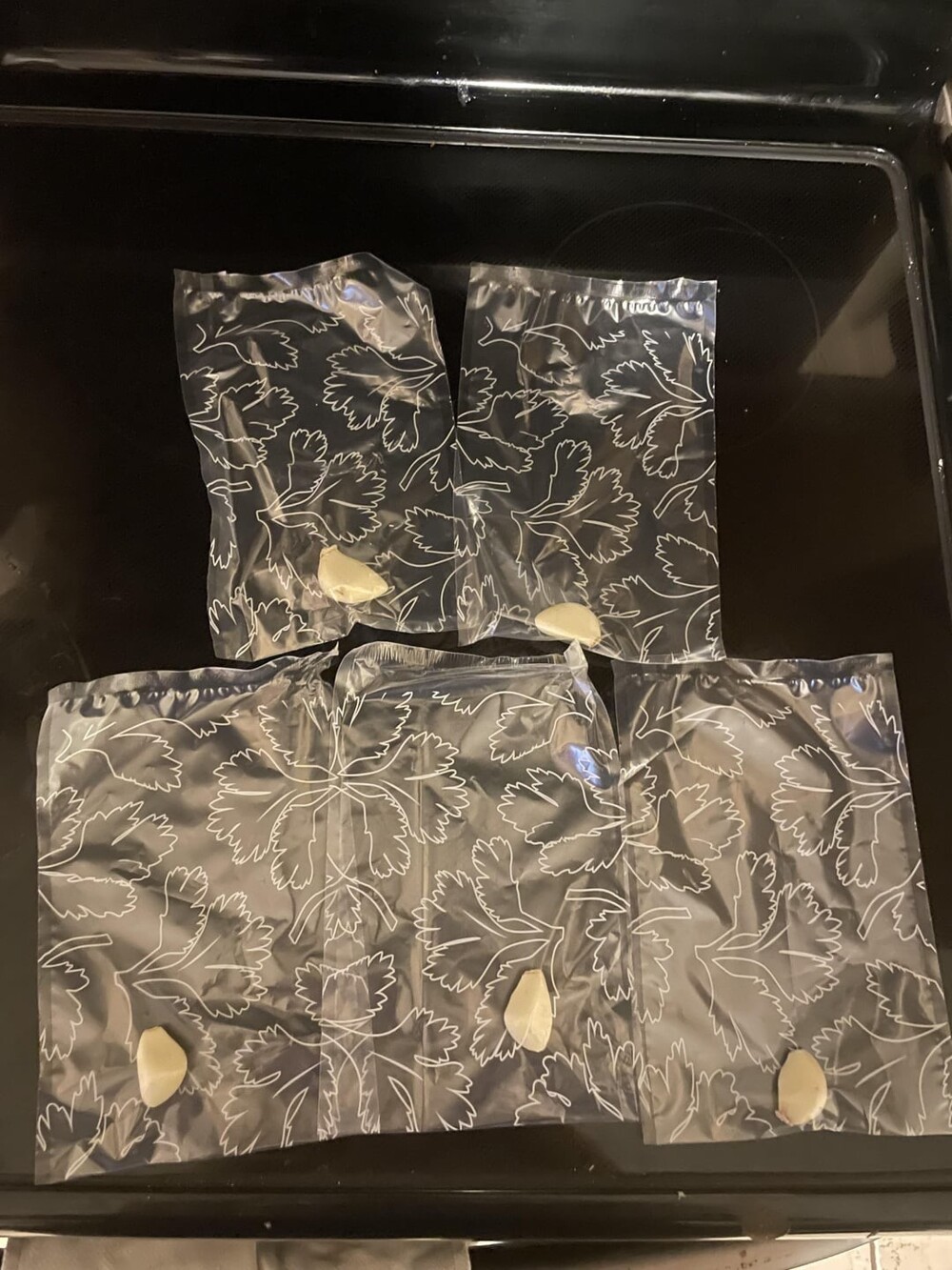 5. 5 зубчиків часнику окремо у 5 пластикових пакетах