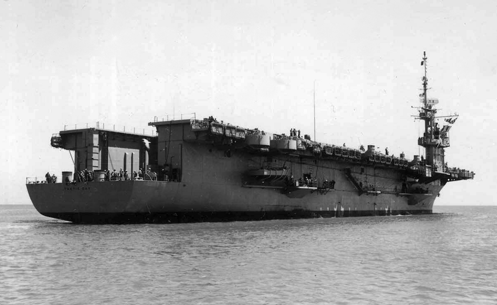 USS Thetis Bay переганяє літаки на авіабазу Аламеда у Каліфорнії, 1944 рік