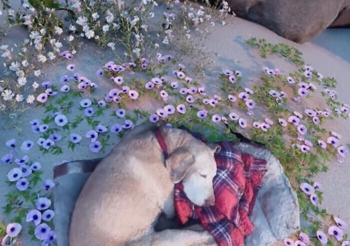 Тепер його улюбленець спить серед найкрасивіших квітів біля моря, а він регулярно відвідує її.