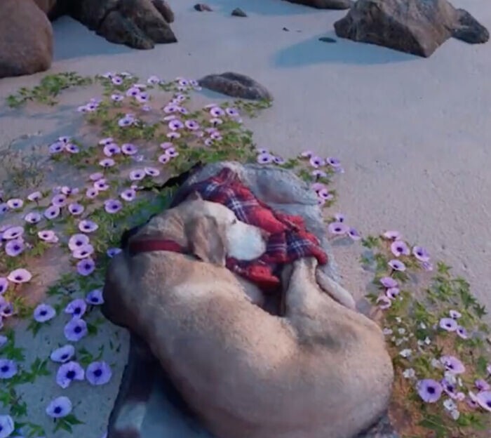 Еспарза втішав себе, що його улюблениця більше не страждає, але вони так і не потрапили на особливий пляж. Проте відданий господар не збирався здаватись. Він використав 3D-технології, щоб відсканувати Сем, коли вона мирно спала. Так чи інакше, але він мав відвезти її на чудовий пляж.