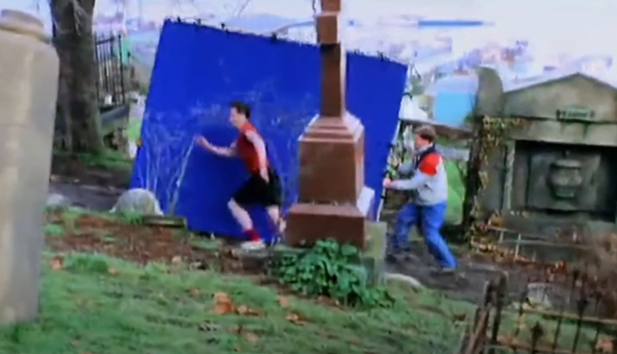14. Звичайно, привиди не взаємодіяли з Френком безпосередньо. Акторів, які зіграли примар, знімали окремо на синьому тлі (хромакей).