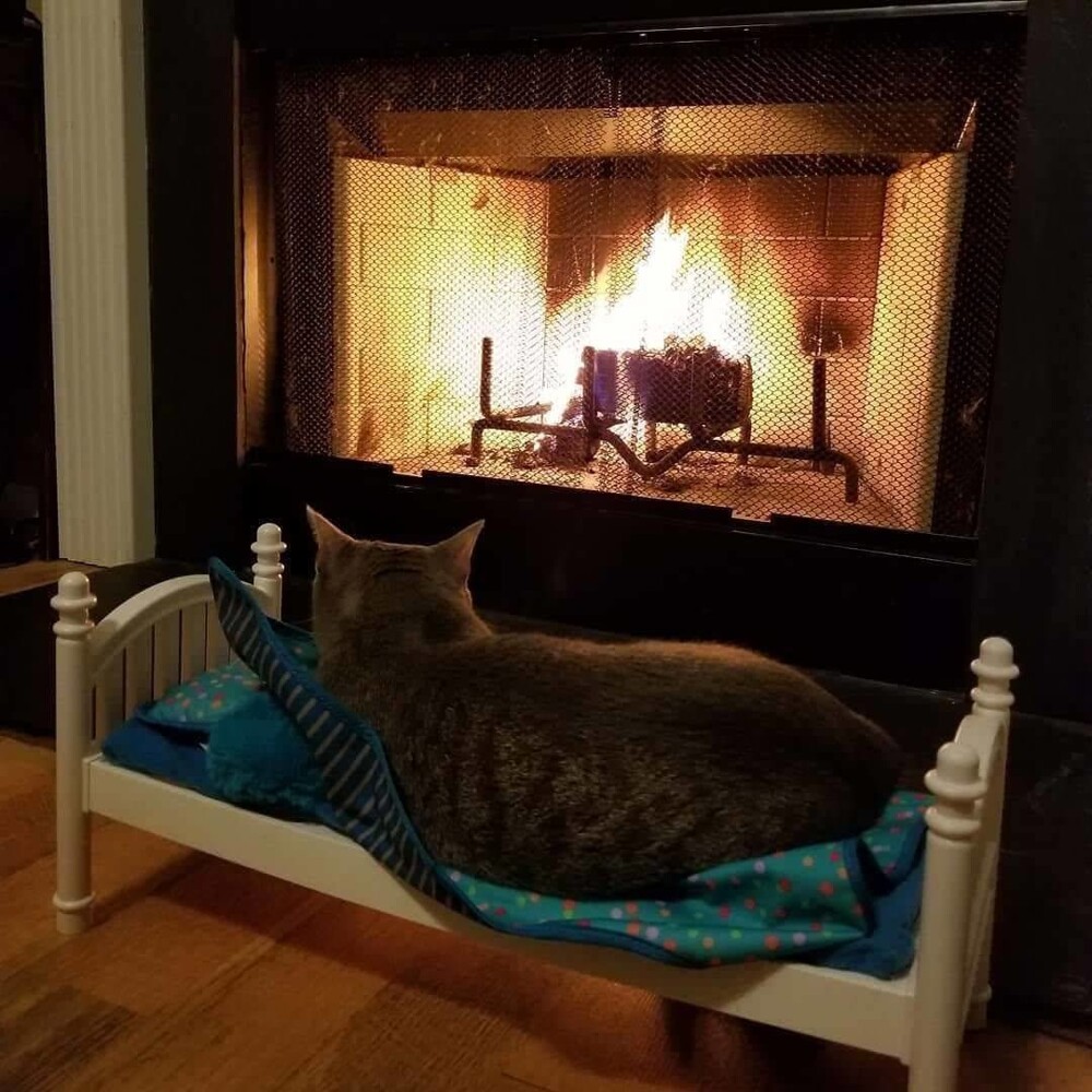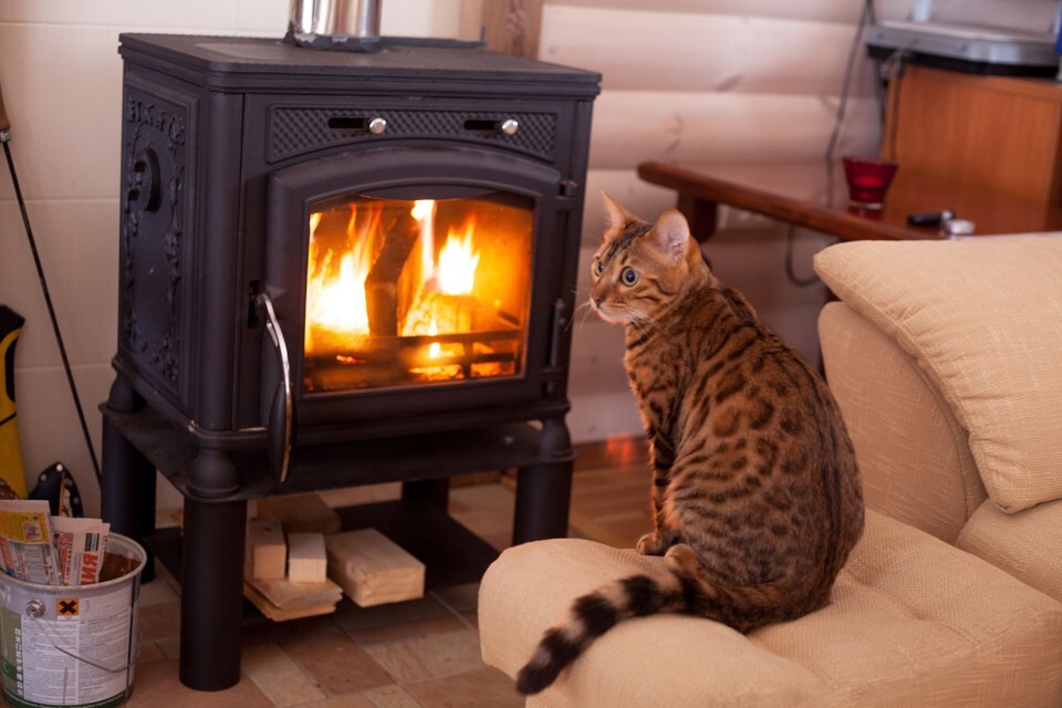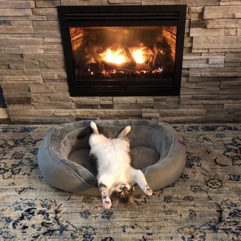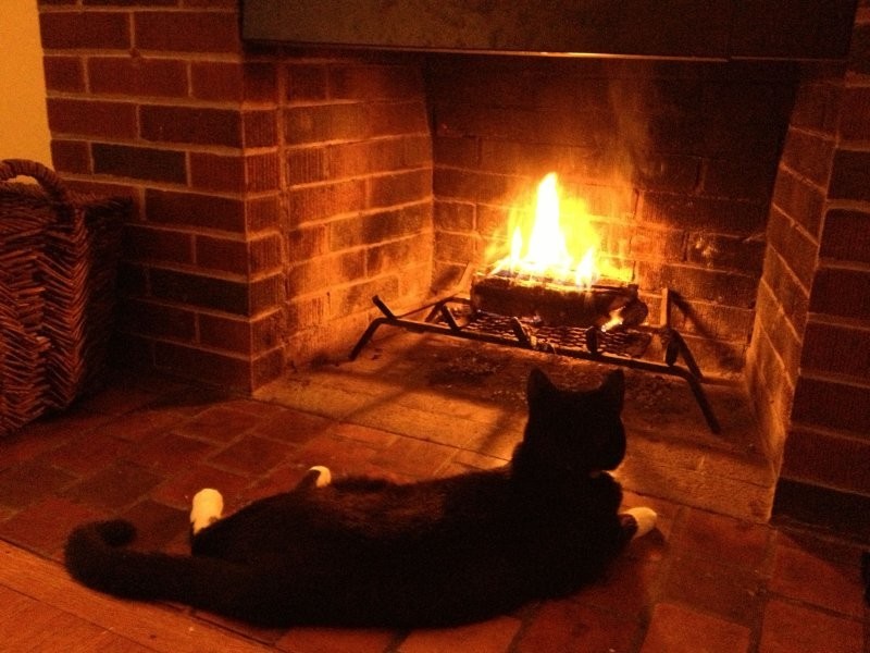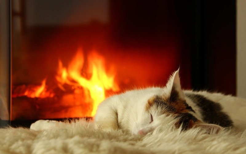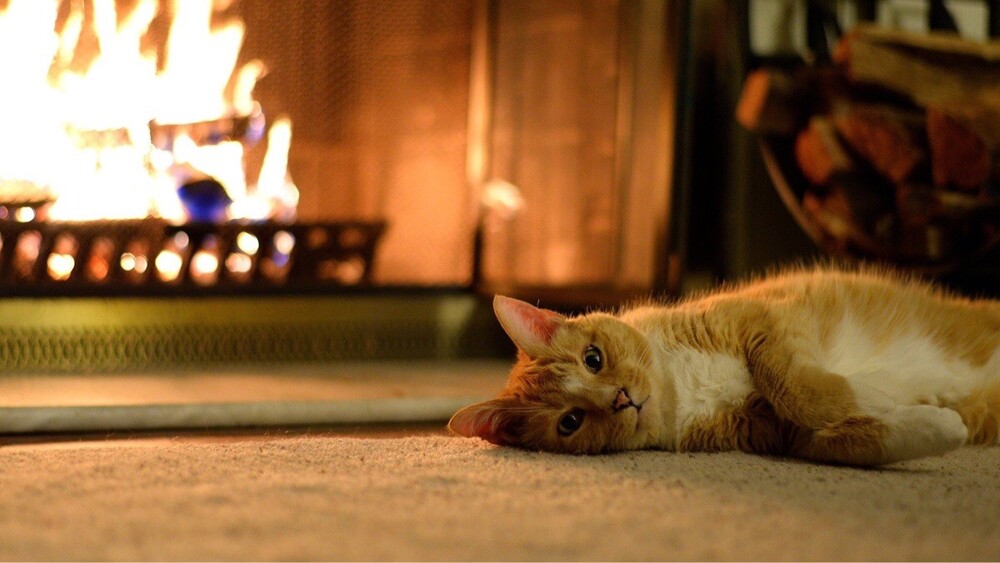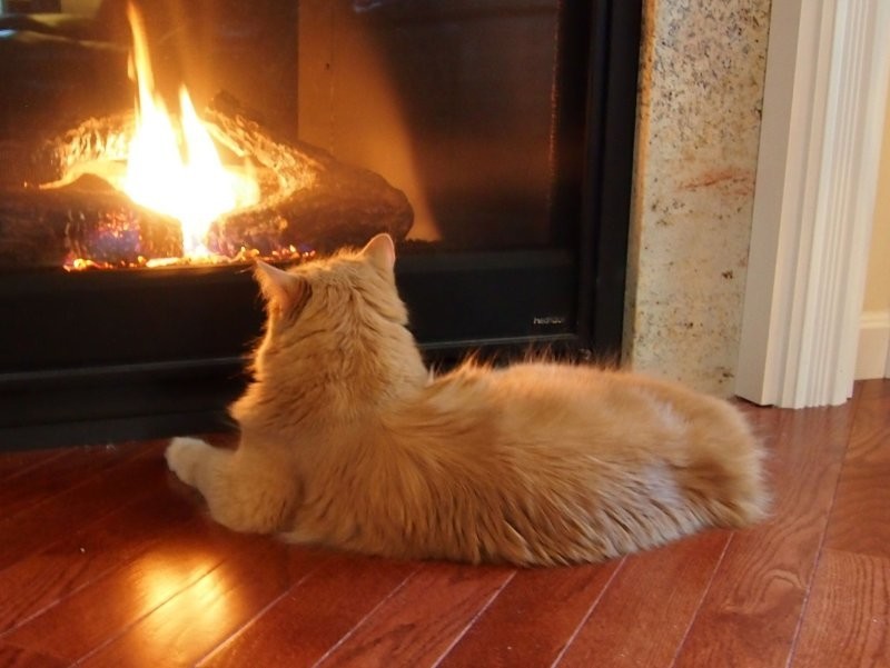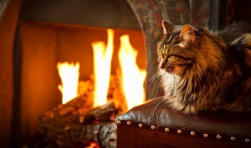 Якщо камін зігріває тіло, то душу зігріють котики, що сидять біля нього. До вогню вони ставляться насторожено (можливо, дається взнаки генетична пам'ять), але можуть годинами заворожено спостерігати за грою мов полум'я, оголошуючи простір утробним бурчанням. Кішка та камін – мабуть, ідеальний дует зимового інтер'єру.