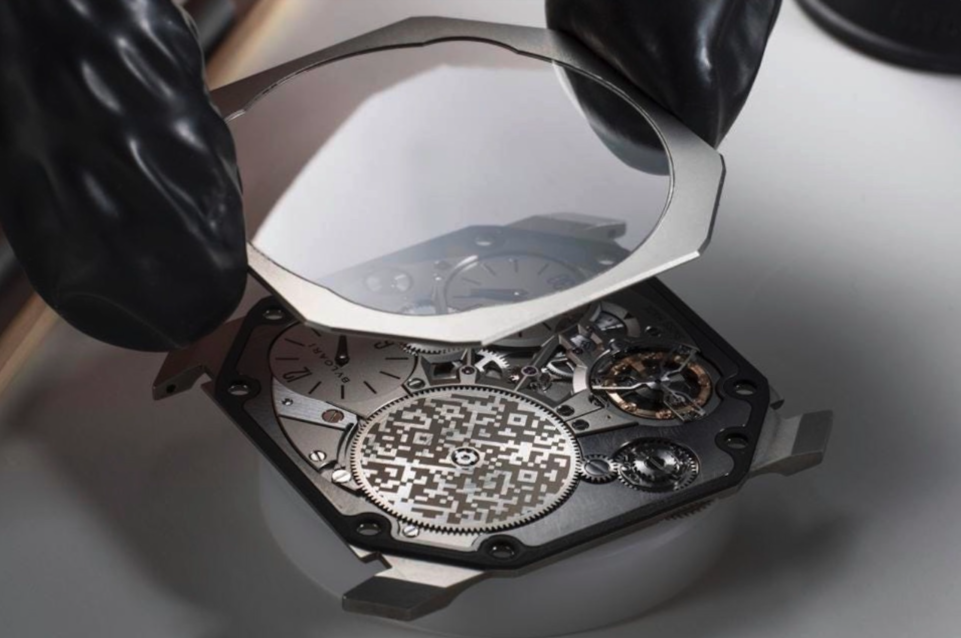 На годинник нанесено лазерне гравіювання QR-коду. Власник отримає ексклюзивне зображення NFT, яке гарантує справжність годинника.