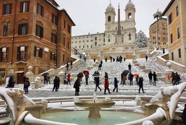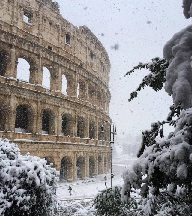 Ми звикли бачити світові столиці в літніх пейзажах, а тут Рим у снігу. Виглядає красиво, а яке самим мешканцям, які рідко бачать сніг – цікаво.