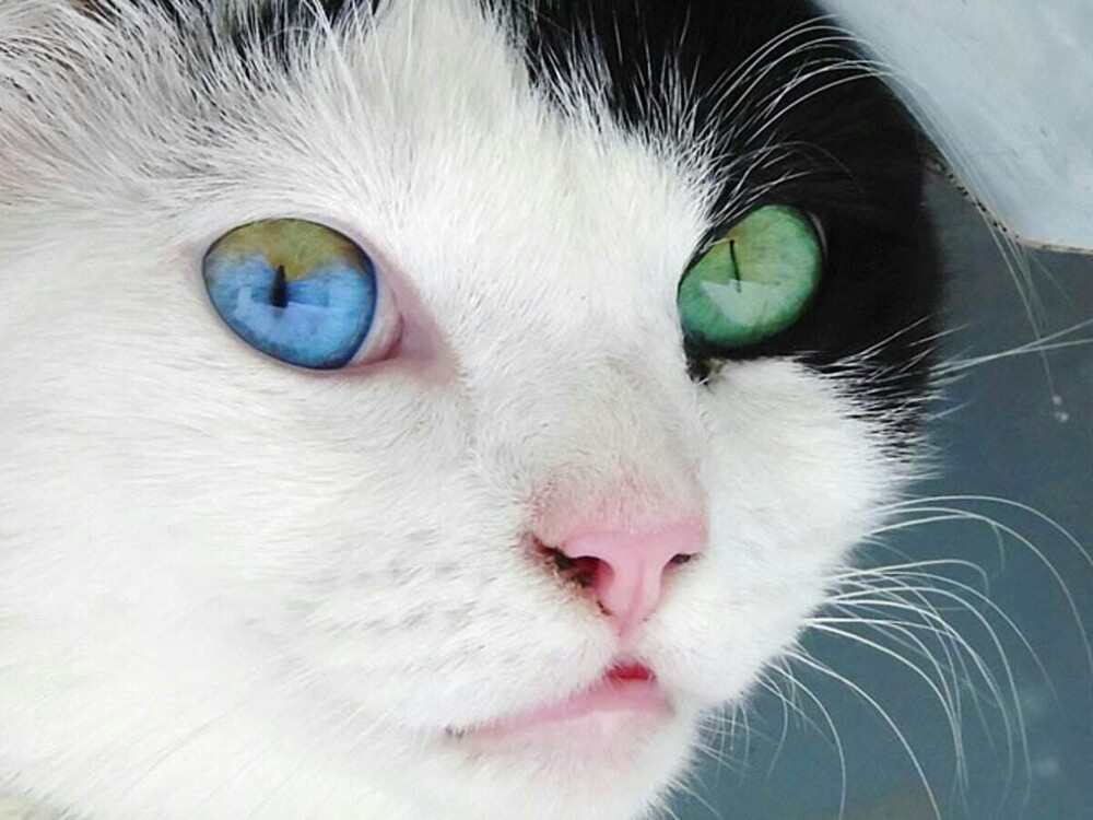 У братів наших менших це явище хоч і зумовлене прозаїчними причинами – генетикою, хворобою чи травмою, але надає власникам різних очей якусь містичну привабливість. Різноокість зустрічається в основному у кішок, у забарвленні яких превалює білий. Такі котики зворушливо і чарівно виглядають, просто змушуючи на мить зануритися в бездонні глибини різнокольорового погляду.