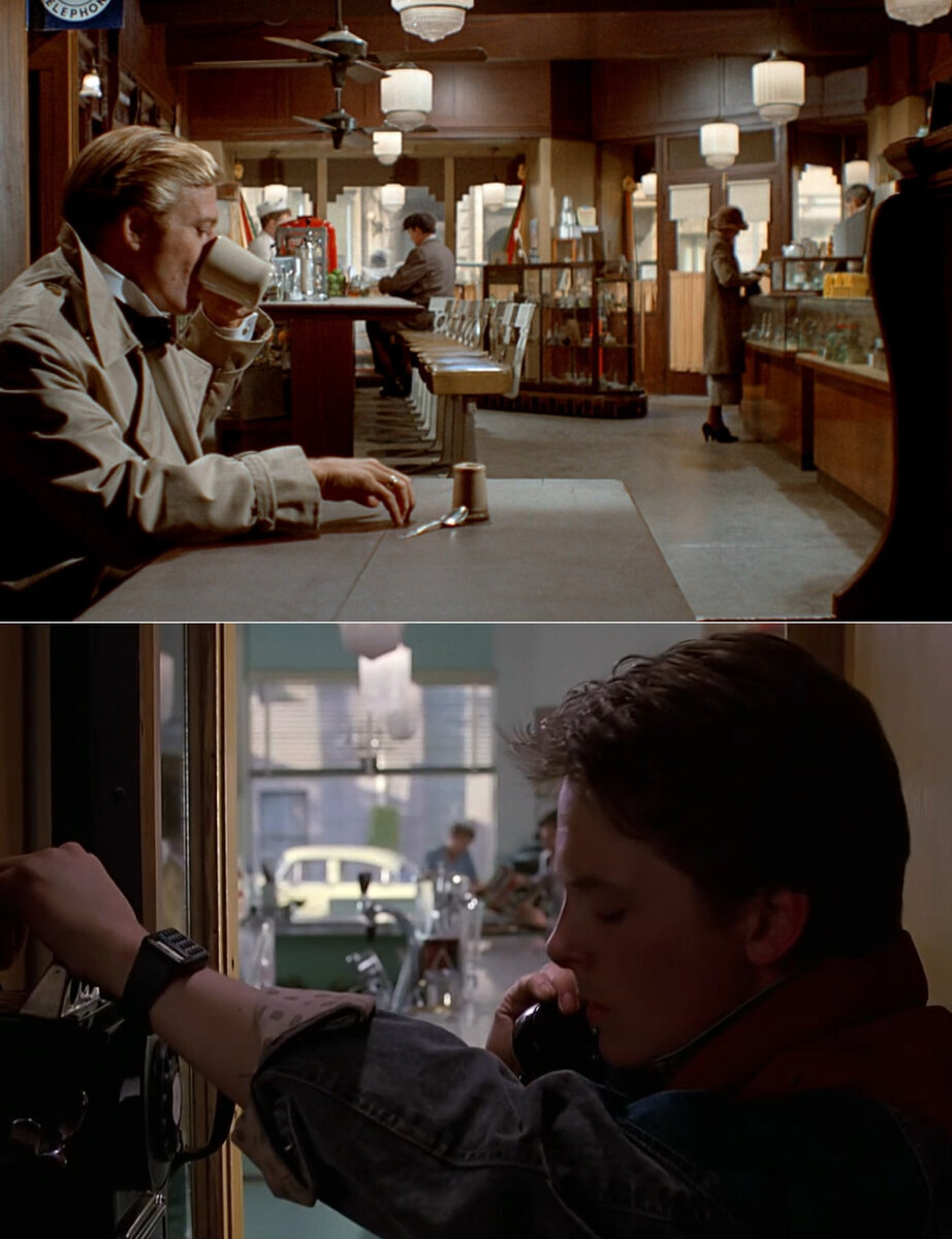 3. Ви, напевно, десь уже бачили кафешку, в якій Джонні зустрічається з Дойлом Лоннеганом (Роберт Шоу). Так, це те саме Lou's Café з «Назад у майбутнє» (1985), в якому Марті Макфлай робить перший дзвінок Доку і зустрічає свого батька.