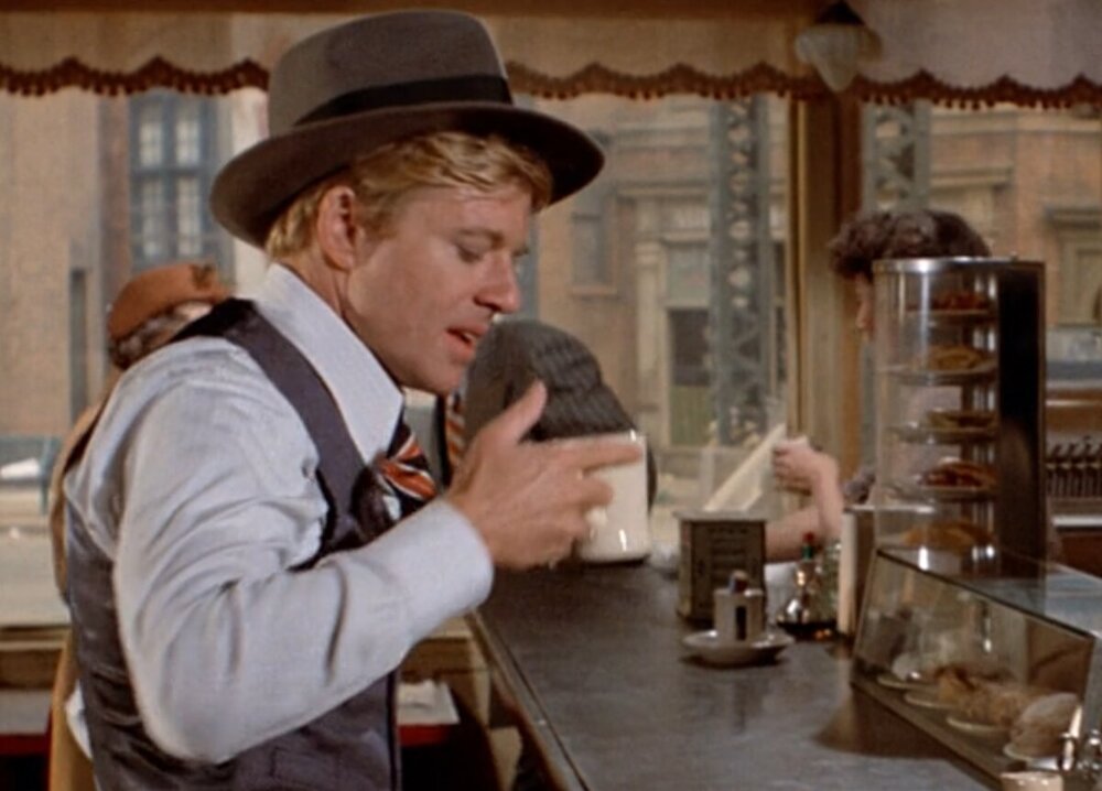 9. За кілька місяців до "Афери" Роберт Редфорд зламав великий палець під час катання на гірських лижах. Зверніть увагу на його праву руку: можна помітити, що актор спеціально уникає рухів цим пальцем: як він тримає гроші, карти, кружки, виделки.