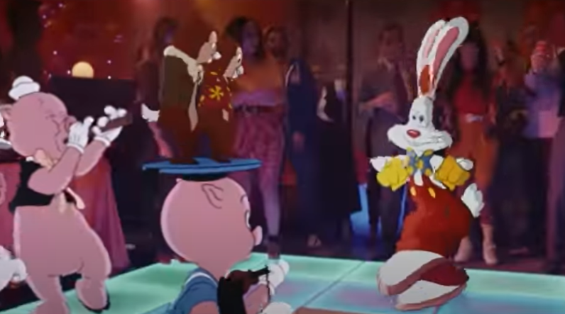 Натомість у фільмі "Чіп і Дейл" (2022), який також наповнений відомими мультперсонажами від різних студій (причому ще в більшому обсязі), ми можемо побачити кролика Роджера.