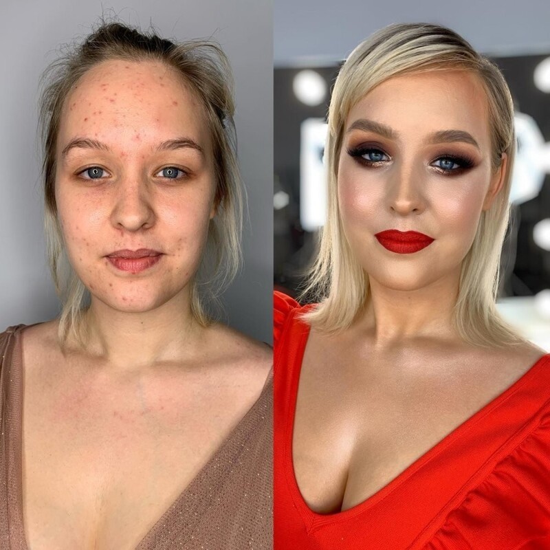 Чоловіки бояться, коли до них приходять дівчата за повного параду на перше побачення. Адже вони не знають, як виглядають їхні супутниці без косметики. І часом можна справді кардинально перетворитися! Все про це знає Матільда Бойда – польський візажист. Її роботи наочно показують, як за допомогою тонального засобу та стрілок можна змінити до невпізнання.