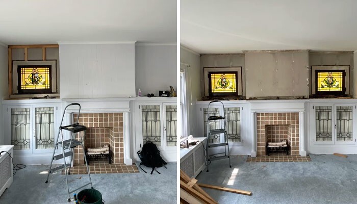 2. "Я робив ремонт у нашому голландському колоніальному будинку 1920-х років, і виявив ці вітражі під дерев'яними панелями"