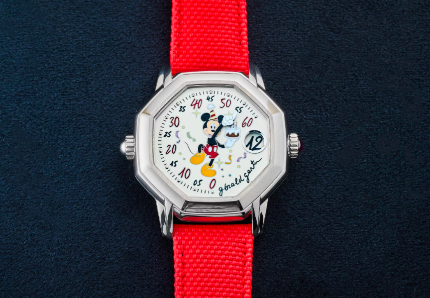 Ця модель Gerald Genta - на вигляд просто кумедний годинник. У центрі циферблату – фігурка Міккі-Мауса. В одній лапці він тримає торт зі свічками, в інший показує на конкретну хвилину. Годинник винесений в окреме кругле віконце. Модель дійсно смішна, але це не дрібничка.