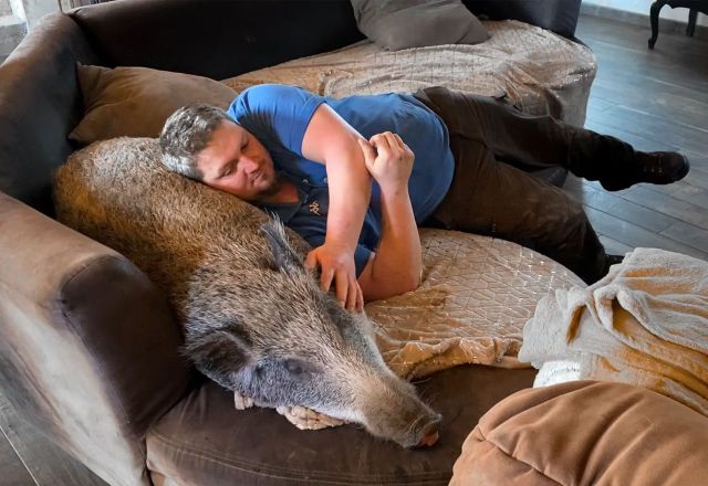 Пара просто гуляла в лісі і раптом виявили маленьке порося. Він був зовсім один. Вони спостерігали за ним, але матінка так і не з'явилася. У результаті подружжя не змогли пройти повз і забрали крихітну свину з собою. У результаті лише за рік кабанчик виріс і набрав аж 80 кг! Однак, завдяки вихованню лісовий гігант став поводитися як справжнісінький песик.