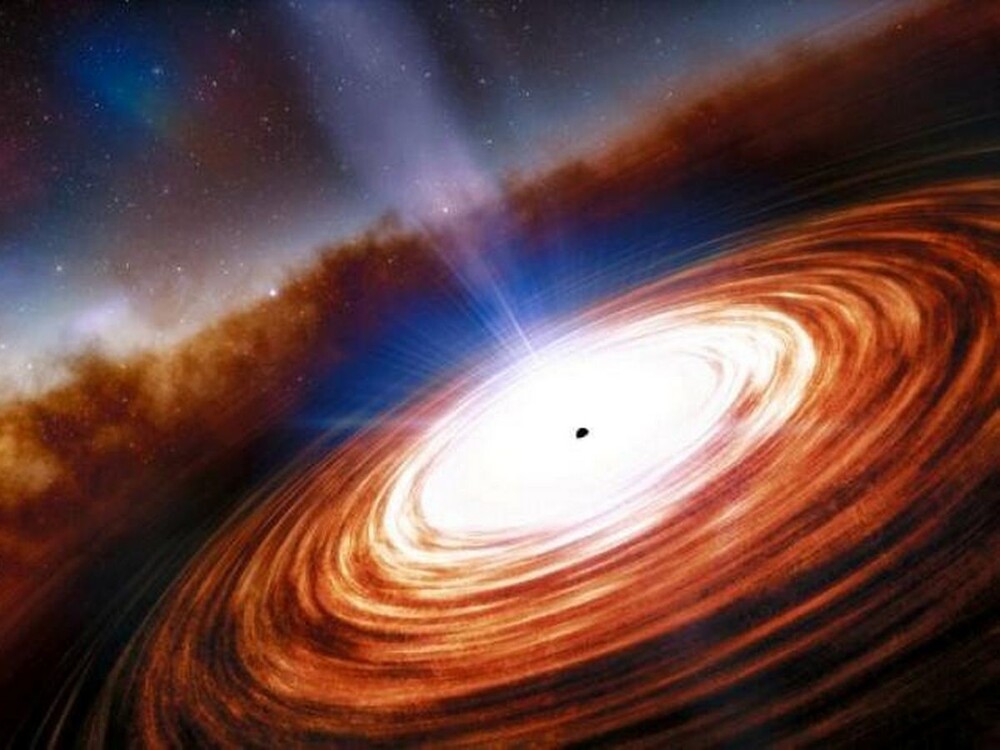 Диск навколо чорної діри квазара, що обертається, - вихровий газ, що світиться, і інша матерія - нагадує космічний ураган.