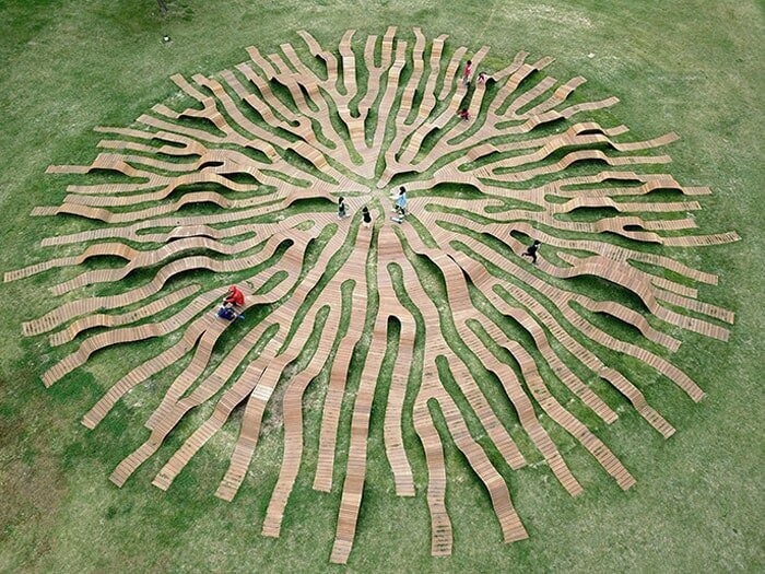 Лавки із сонячними батареями та вбудованими зарядками для мобільних телефонів