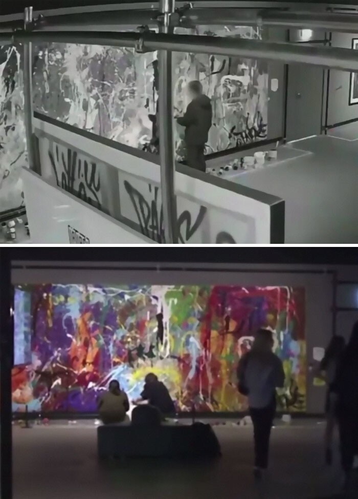32. Молоді люди випадково зіпсували картину вартістю 500 000 доларів. Поруч лежали кисті та фарби, і вони вирішили, що це така інтерактивна виставка