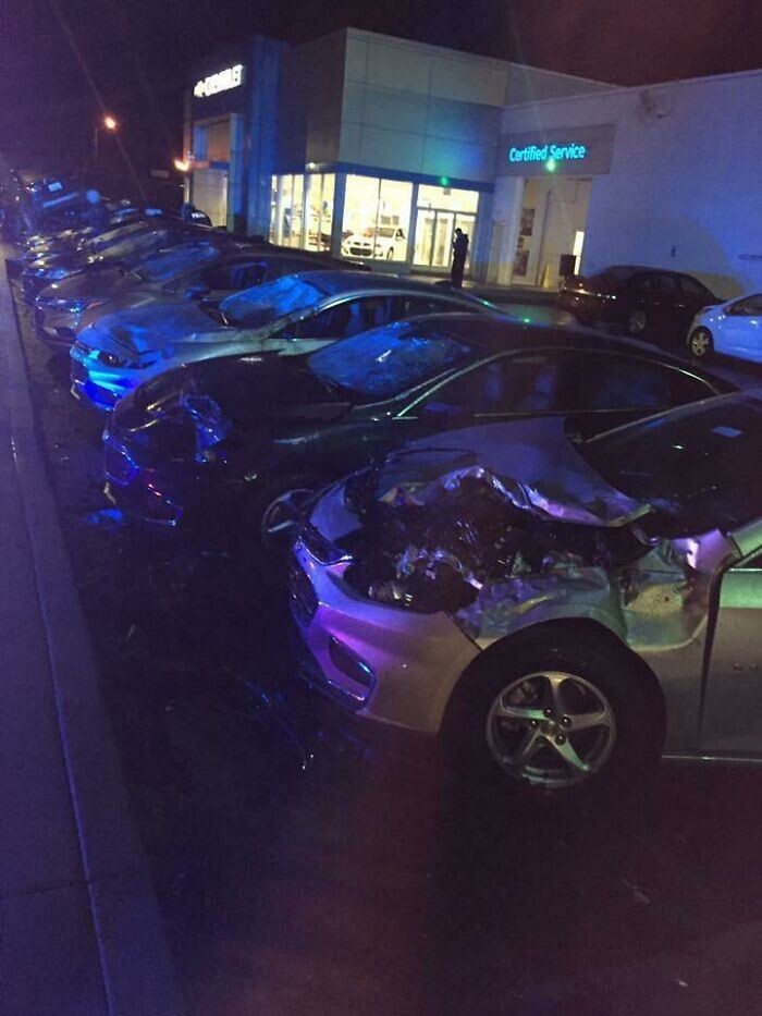 14. Хтось вилетів на машині з тротуару і проїхався одразу 12 новеньким "Шевроле"
