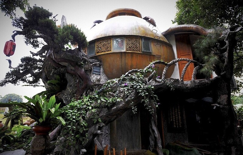 Китайський художник створив будинок, схожий на чайник та ще й помістив його на дерево.