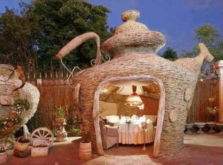 Виходить оригінально та креативно. І про такий важливий захід як випити чашечку чаю та відволіктися від повсякденної метушні такі архітектурні твори забути не дозволяють, і просто радують душу та око незвичайним виглядом.