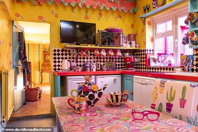 Подружжя оформило кожну кімнату у своєму унікальному стилі. Кухня оздоблена шашковим малюнком, а на жовтих стінах намальовані квіти. У гончарній майстерні Мері, де вона створює свої вироби в стилі «Аліси в Країні чудес», стеля прикрашена різнокольоровими смужками з різними візерунками.