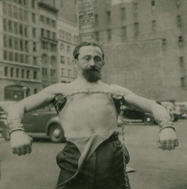 Він буквально перекушував зубами цвяхи. Якось прив'язав своє волосся до літака і притис його до землі, коли той спробував злетіти. 29 вересня 1928 року заголовки газет сповістили світ: «Могутній Атом – суперсильна людина протистоїть літаку і перемагає!»