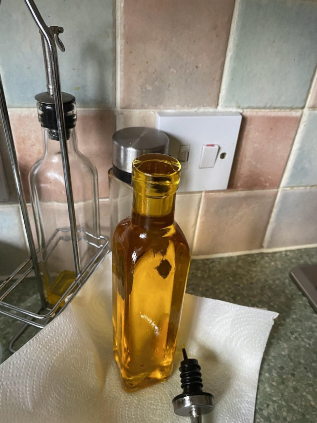 Якщо наповнити пляшку до країв олією, вона буде виглядати як цілісний шматок скла