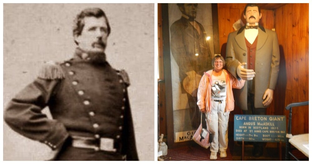 При зростанні 2,4 метра Ангус Макаскілл - гігант із Нової Шотландії важив приблизно 195 кілограмів і міг похвалитися обхватом грудей 130 сантиметрів. Довжина долоні становила 30 см, а довжина стопи – 46.
