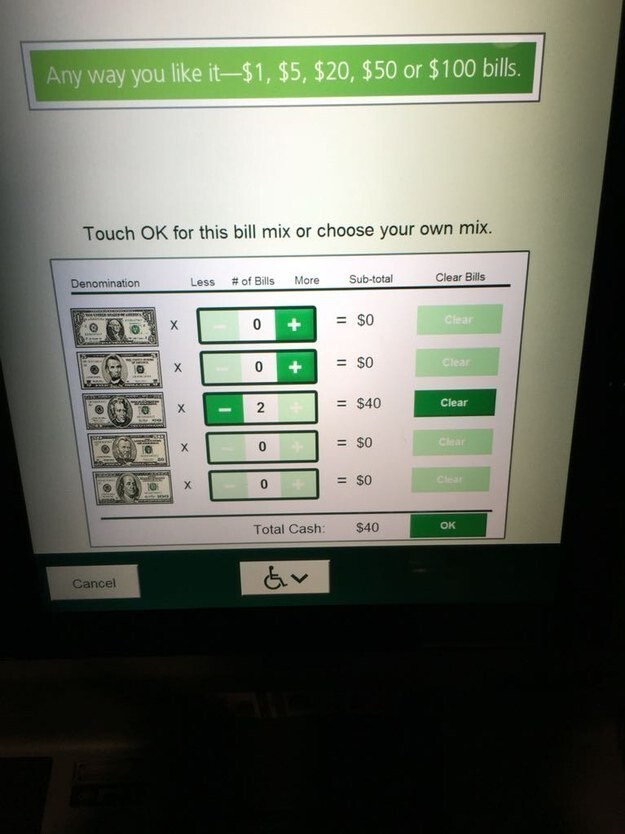 7. Банкомат, який пропонує обрати потрібні купюри