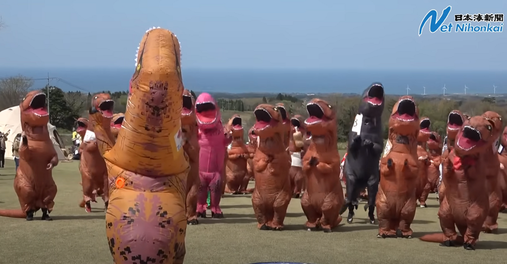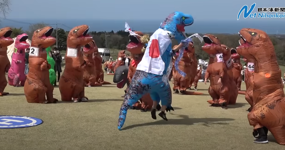 Чи не в Японії. Перші перегони у надувних тиранозаврах провели у 2019 році штаті Вашингтон, Оберн. Усю подію зняли в ролик, він завірусився в мережі і підкорив серця японців. Так сильно, як ніде на Заході.