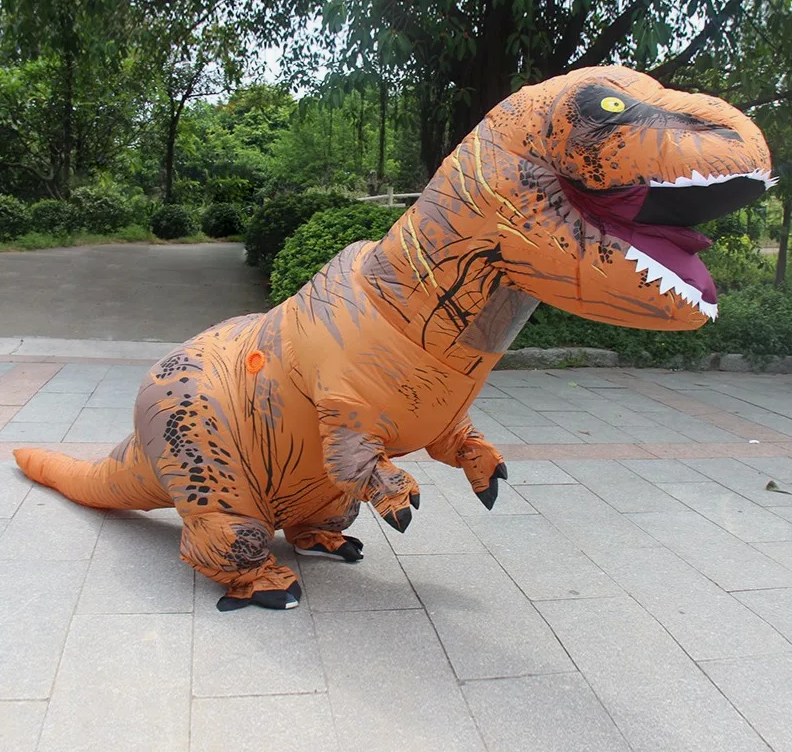 У Японії одні з найвищих продажів цих надувних костюмів спеціально завозять рідкісні забарвлення, як ви можете бачити на фото з заходу. Я більше ніде не бачила тирранозавра-скелета.