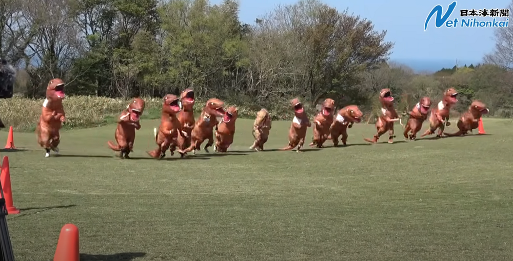 В одній із останніх динозаврових перегонів у Чібі взяло участь 60 бігунів. Довелося навіть ділити забіги на дитячий, дорослий самок і дорослий самців. Так, не чоловіки та жінки, а самці та самки – японці підходять до справи серйозно.