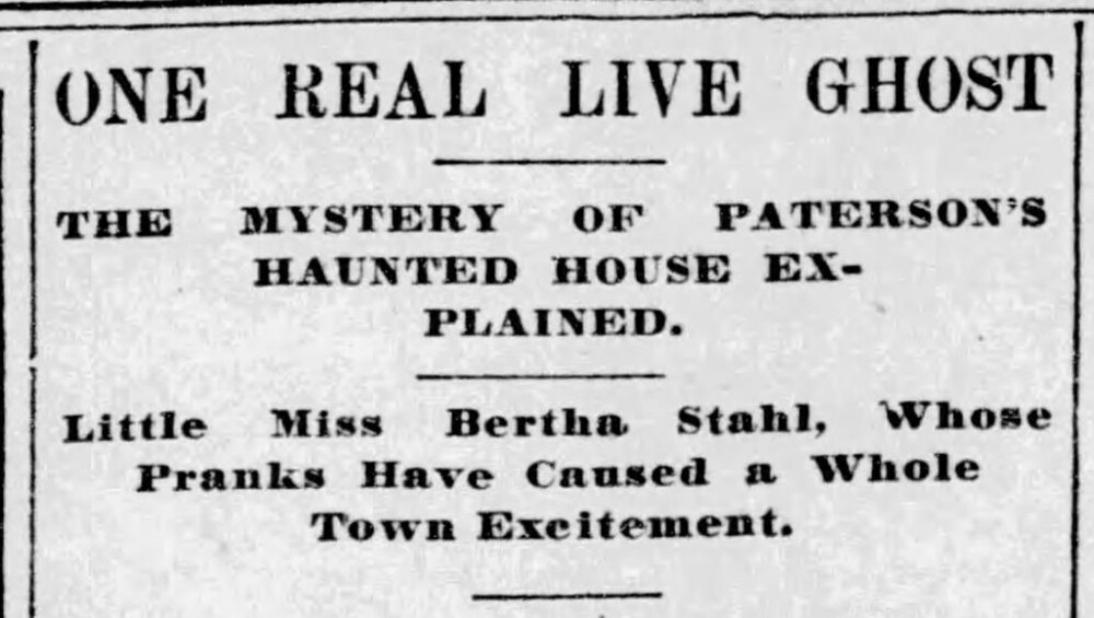 Так було у січні 1900 року у будинку в Патерсоні, штат Нью-Джерсі. Джейкоб та Елізабет Шталь виховували сімох дітей. Але, мабуть, вони ще мали вільне містечко в будинку навіть за такої щільності населення. Оскільки після Різдва у них оселився ще й привид.