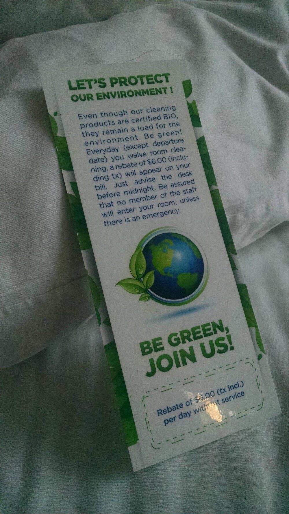 15. Готель у Квебеку повертає 6 доларів за кожен день, коли ви відмовляєтеся від прибирання, щоб подбати про навколишнє середовище