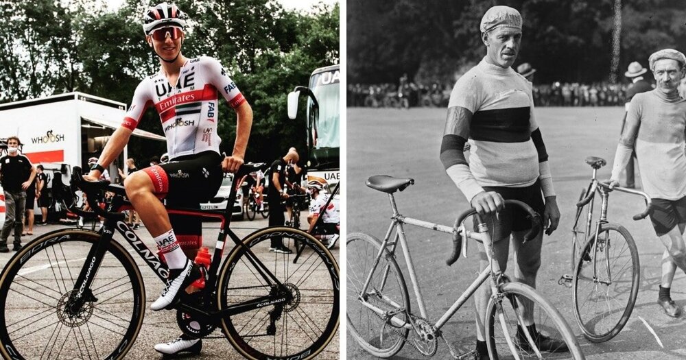 Переможець Тур де Франс 2020 року Тадей Погачар (Словенія) та переможець Тур де Франс 1921 року Леон Сьєр (Бельгія).