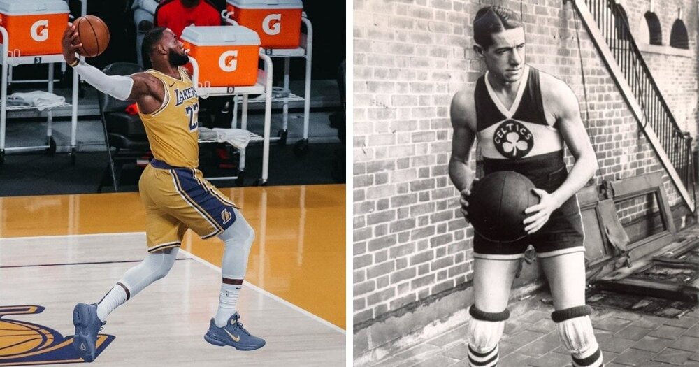 Чинний баскетболіст збірної США Леброн Джеймс (зростання 206 см) та професійний американський баскетболіст 1920-1930-х років Нет Холман (зростання 180 см).