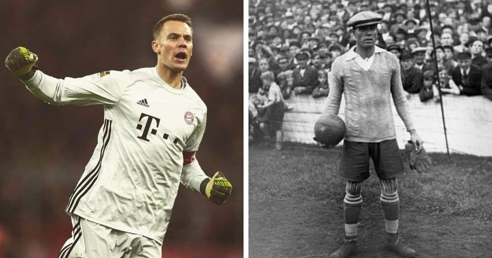 Чинний основний воротар збірної Німеччини Мануель Нойєр та воротар збірної Іспанії 1920-1930-х років Рікардо Самора.