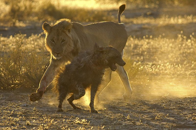 Гієноподібні собаки - одні з найдрібніших африканських ссавців. А леви – найбільші серед них. Уловлюєте зв'язок? Так саме! Льовушкам не обов'язково щоразу намагатися щосили, щоб добути їжу. Тому що її можна відібрати! У собак, гепардів, леопардів та й взагалі у всіх! Ніхто навіть пискнути проти не посміє!