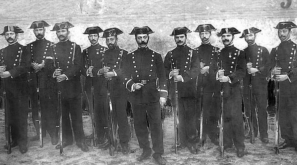Походження цього химерного головного убору сходить практично до самого заснування Громадянської гвардії.