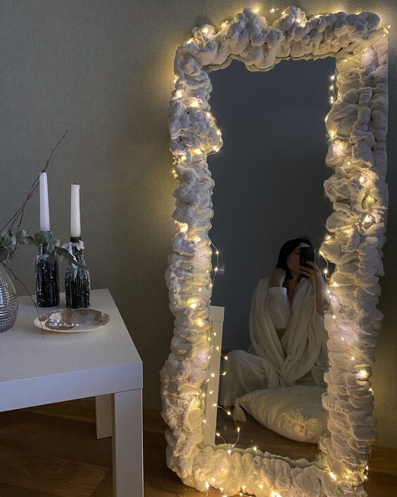 Дзеркала з декоративними елементами: Вбудовані світлодіоди, гравіювання, піскоструминний малюнок або навіть нанесення фотографії на поверхню дзеркала роблять його не тільки функціональним, а й декоративним елементом інтер'єру. Їх можна зробити своїми руками.