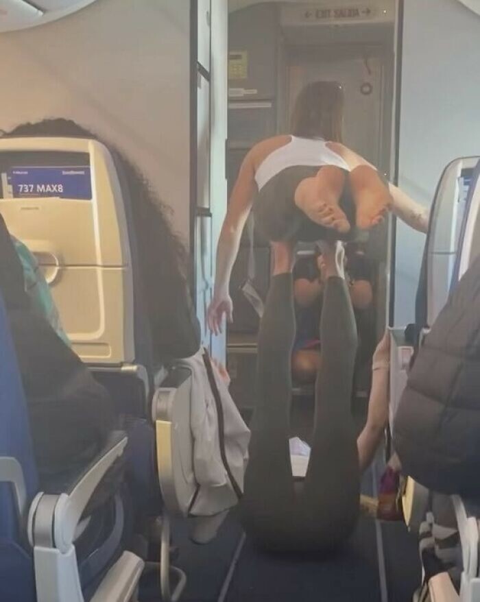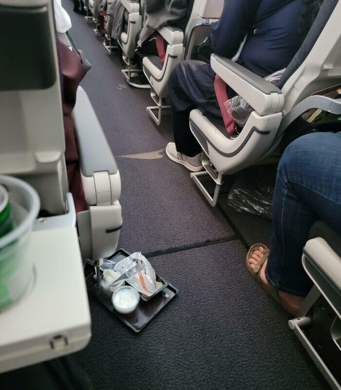 6. "Ця жінка просто кинула свій піднос з їжею посеред проходу в літаку"