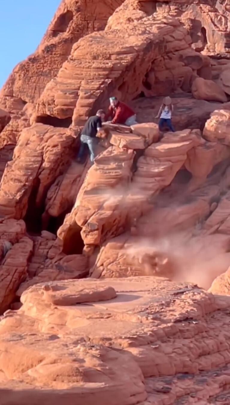 Минулими вихідними відвідувачі національного парку Лейк-Мід, штат Невада, США, серйозно пошкодили одну з скам'янілих дюн. Очевидці зняли, як двоє чоловіків піднялися на стародавню формацію, і та з гуркотом посипалася.