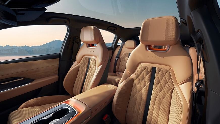 У оббитому бежевою алькантарою п'ятимісному салоні, накритому зверху прозорим дахом, домінує величезна центральна консоль, що «парить», виконує попутно роль підлокітника з підсклянниками. Над торпедо височіє 14.6-дюймовий планшет із швидкодіючим процесором Qualcomm SA8155 Snapdragon, завідувачем не тільки мультимедійки, але ще й кліматичною установкою, налаштуваннями крісел та іншими функціями. У штатне обладнання входить амбіентне підсвічування та акустика Sony з 14 динаміками. Крім того, можна розраховувати на адаптивний круїз-контроль, що дозволяє випустити кермо з рук, автопарковник, систему панорамного зображення з 3D, «прозорий» капот і т.д.