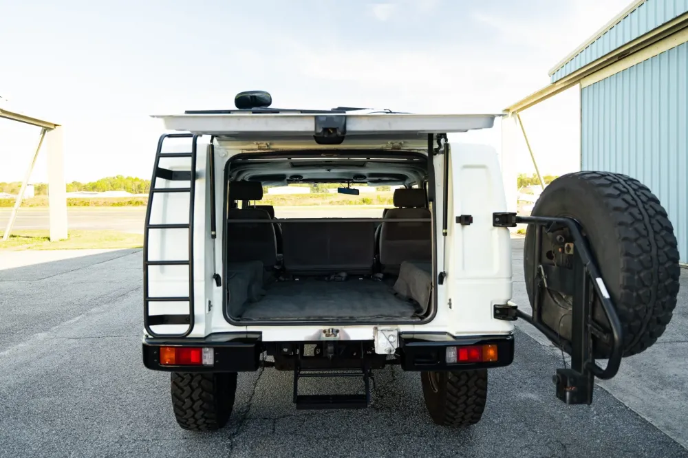 Особливих подробиць історії даного екземпляра Mega Cruiser автори оголошення не наводять. Відомо, що у США машина потрапила з Японії у 2023 році. На її одометрі значиться трохи більше 114 000 кілометрів, а перед виставлянням на торги дилер провів невелике сервісне обслуговування. Зокрема, майстри попрацювали з електрикою та гальмами, а також взули позашляховик у свіжі 37-дюймові шини Nitto Trail Grappler.