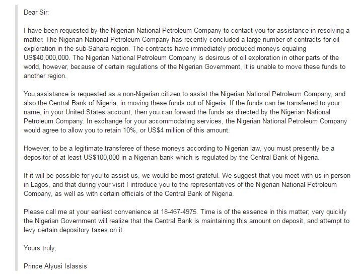 Напевно, кожному з вас приходив на електронну пошту лист, що повідомляє про заповіти від невідомого, але дуже багатого дядечка з Нігерії. Який благополучно спочив, але залишив душеприказчикам чіткі інструкції щодо спадщини.