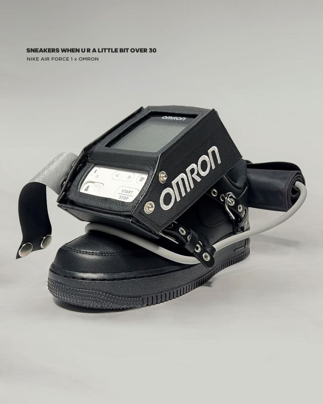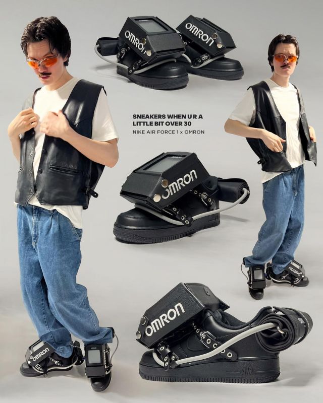 Воу-воу-воу, що це тут? Нова крута "колаба" Nike та Omron! Так, нарешті вони вирішили подбати про стареньких і зробити справді практичні кросівки. Тепер можна круто тусити з пацанами та міряти тиск у магнітні бурі. Нарешті.