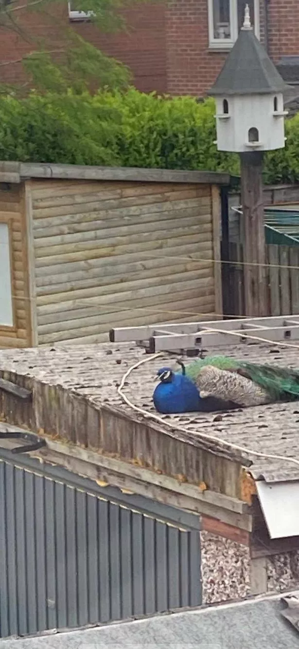 Жінка додала, що павич, що втік, з'явився на початку минулого тижня, він заходить у сади людей "відпочити" і залітає на дахи будинків, уникаючи затримання.