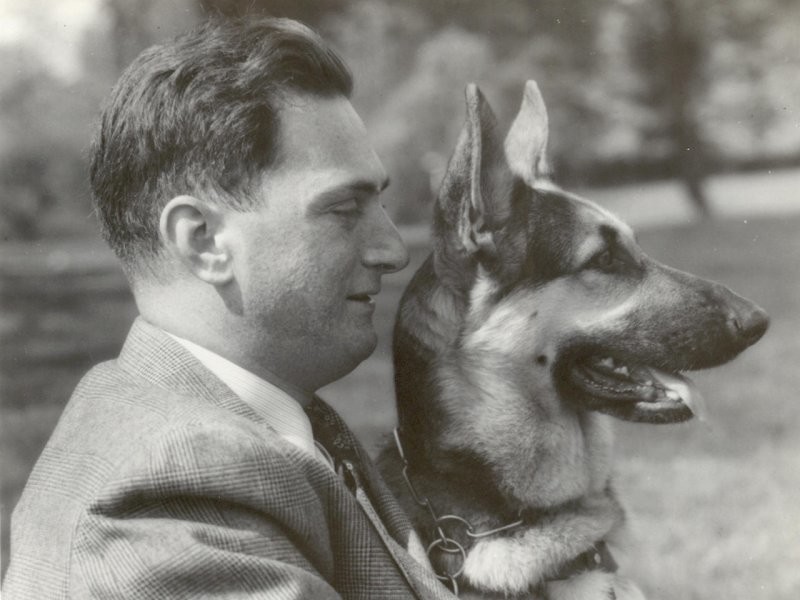 У статті, написаній американською дресирувальником Дороті Харрісон Юстіс, розповідалося про школу в Німеччині, де навчали осліплих ветеранів Першої світової війни роботі з собаками-поводирями. Френк написав Юстіс з приводу придбання собаки-поводиря. І жінка запросила його до Fortunate Fields – її школи у Швейцарії. Він приїхав у лютому 1928 року, і його напарником стала німецька вівчарка на прізвисько Кісс. Він назвав собаку Бадді.