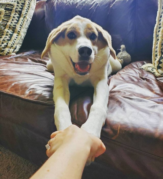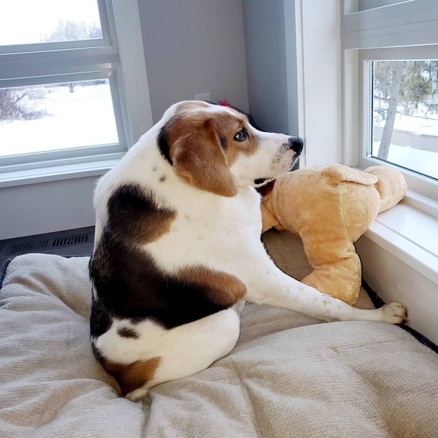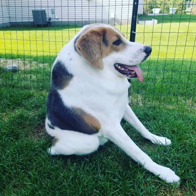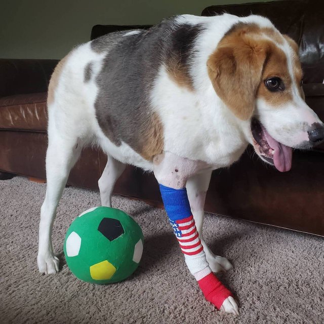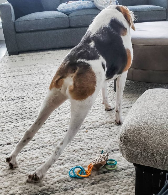Це американський фоксхаунд народився з рідкісним спадковим захворюванням – синдромом короткого хребта. Заводчики кинули цуценя у 2017 році, коли йому було лише 2 місяці. Його знайшли у лісі у Вірджинії, після чого передали до люблячої родини.