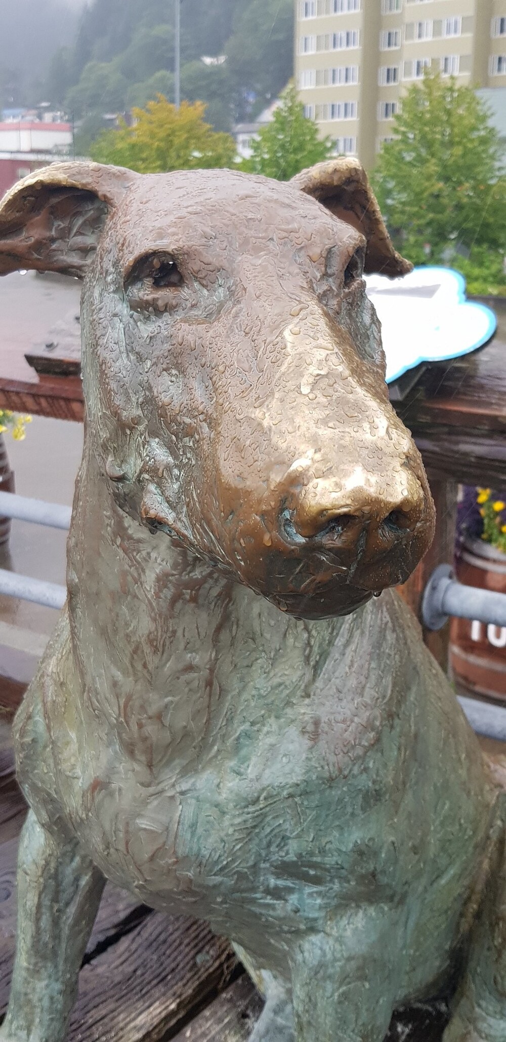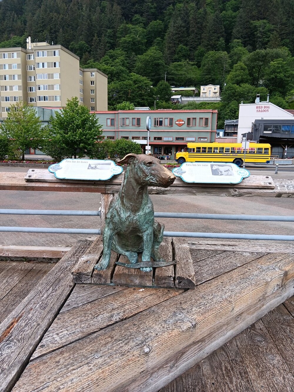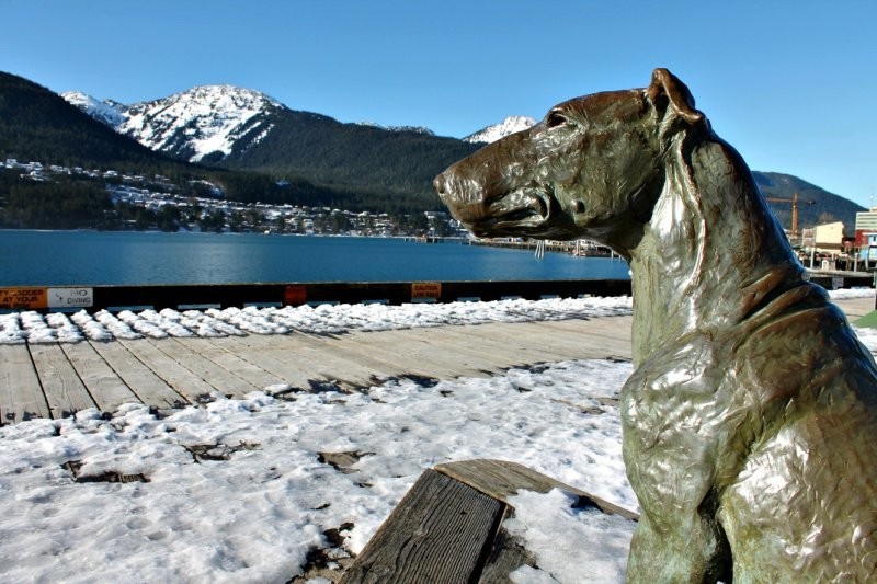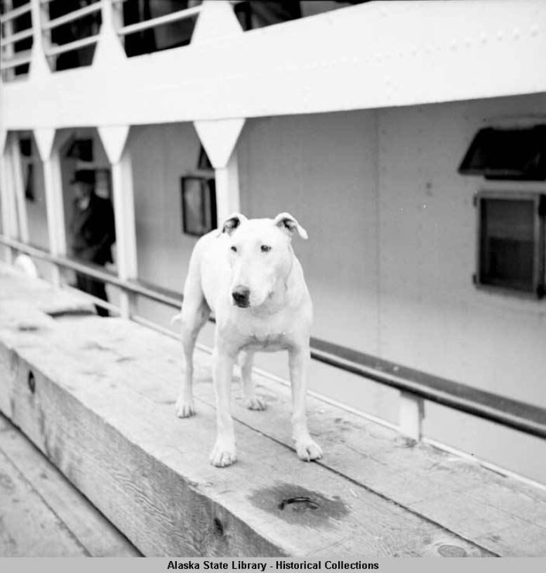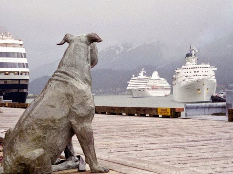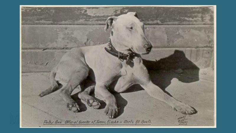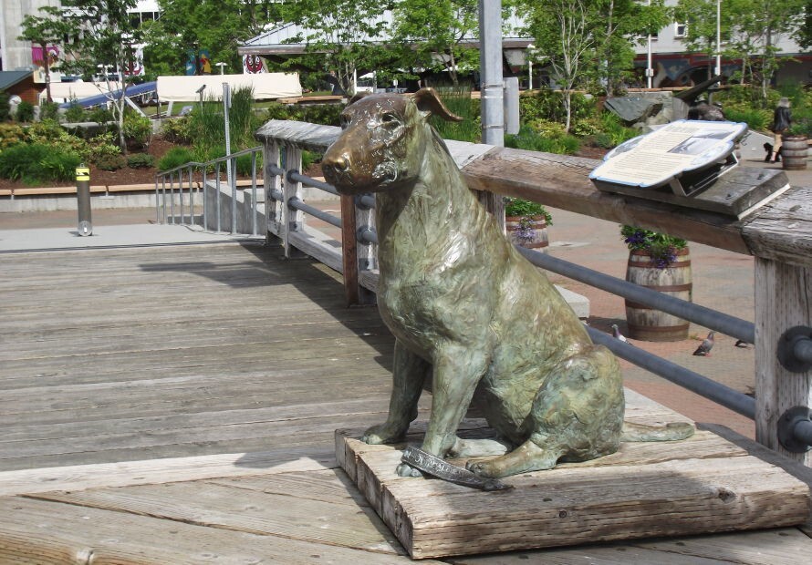 Цей собака, відомий як «Офіційний Джуно, що зустрічає», досі вітає кораблі та їх пасажирів на Алясці.